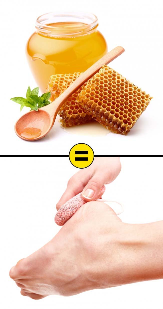 Bột gạo tẩy tế bào chết, thanh lọc và tái tạo da. Mật ong là chất khử trùng tự nhiên giúp chữa lành vết nứt chân. Giấm là một loại axit nhẹ làm mềm da khô và giúp dễ dàng tẩy tế bào chết.