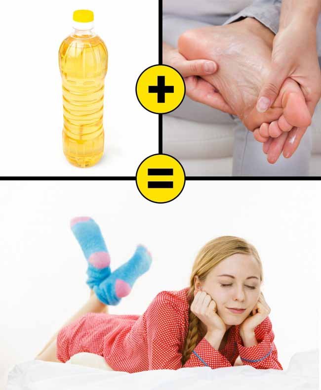 Làm sạch chân kỹ lưỡng rồi lau khô chân bằng khăn mềm. Thoa một lớp dầu thực vật dày lên gót chân và ngón chân. Áp dụng cách này mỗi tối trước khi đi ngủ để chữa nứt gót chân.