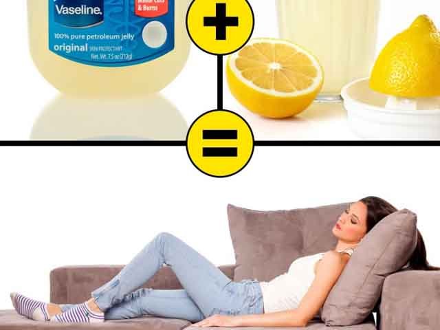 Vaseline hoạt động như một chất dưỡng ẩm, và axit citric trong nước chanh thúc đẩy sự bong tróc da và sự phát triểncủa các tế bào da mới.
