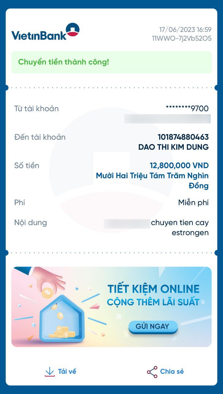 Chị L.Q sau khi gặp đươc DS Dung đã được tặng 2 ống DSA EVA Estrogen để sử dụng trước.Chị L.Q tâm sự: “Sau khi bơm 2 ống là em hết rỉ tiểu khi ho, cơ vòng hậu môn có dấu hiệu co lại.”