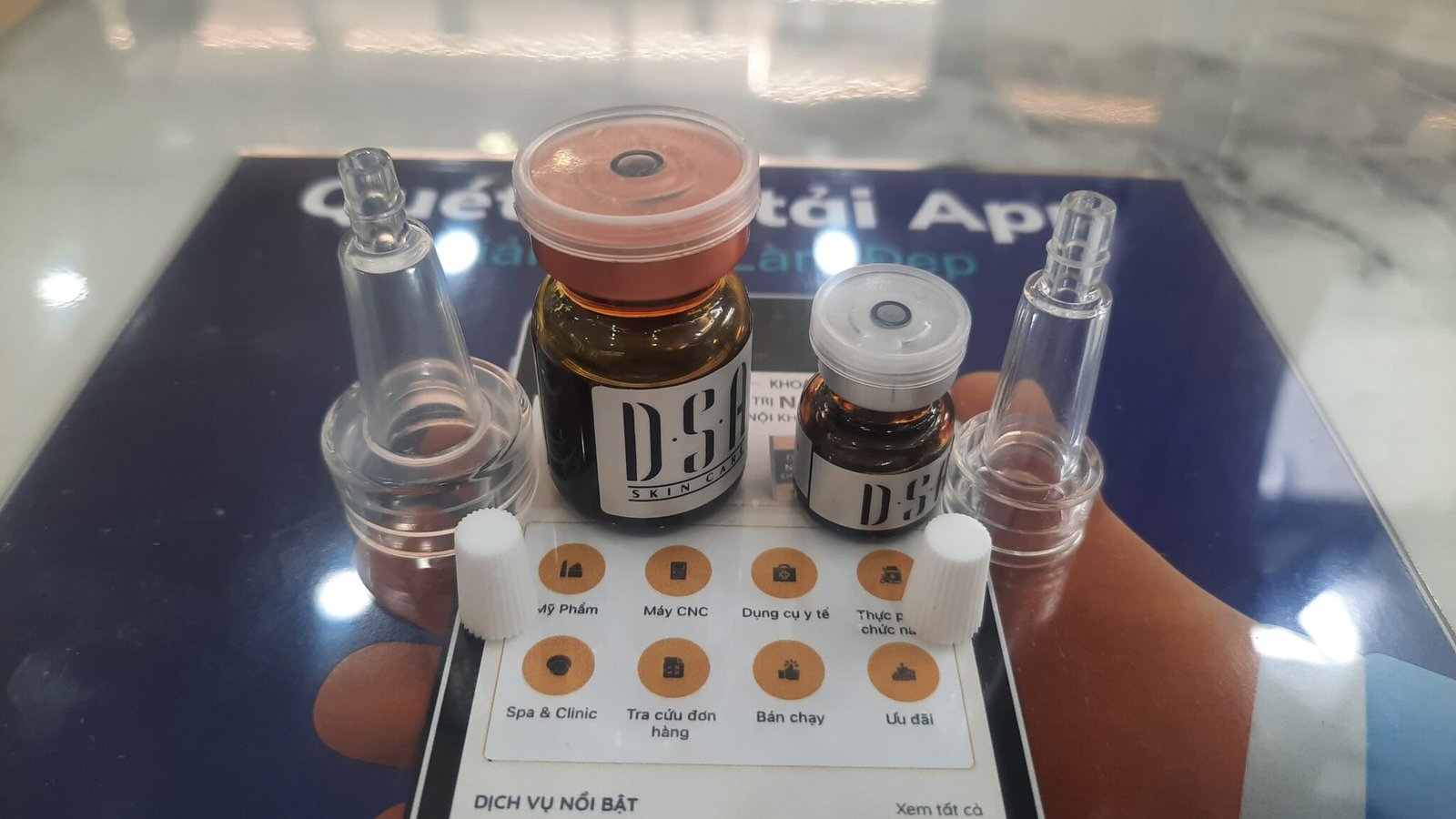 • Bước 2: Mở nút cao su trên miệng lọ thủy tinh. Sau khi mở nút cao su sẽ thấy nắp kim loại niêm phong lọ thủy tinh chứa tinh chất.